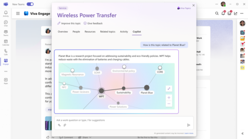 Der Microsoft 365 Copilot ergänzt Viva Topics durch die Fähigkeit, Informationen mittels natürlicher Spracheingabe zu extrahieren. Diese Technologie ermöglicht es, spezifische Anfragen zu stellen und in Echtzeit Antworten aus den Unternehmensdaten zu erhalten. Copilot bietet nicht nur schnelle Antworten, sondern verbindet Informationen auch mit aktuellem Kontext und reichert sie mit zusätzlichen Unternehmensdaten an.